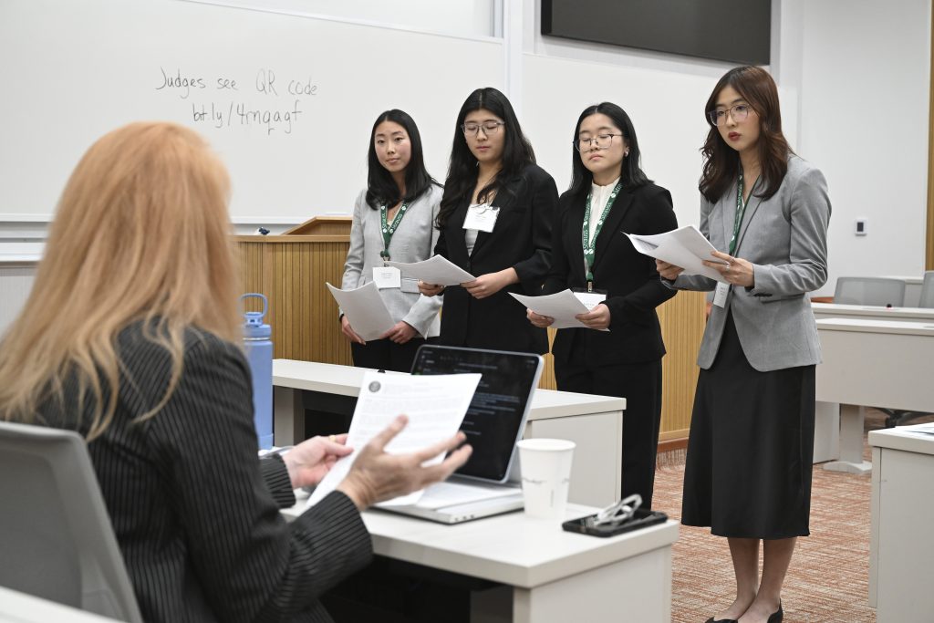 Teams presented, then answered questions from the judges, and received feedback on their oral and written briefs. Judges graded the teams based off of the feasibility of their solutions, as well as their creativity, teamwork, understanding of the national and international law and policy at play, and more.