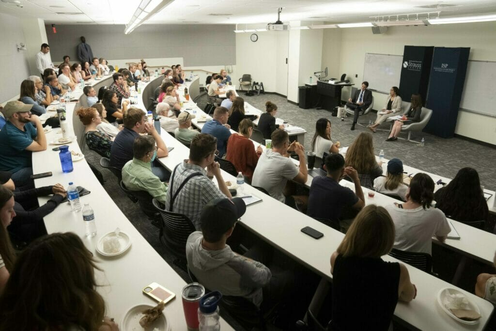 On Thursday, September 22, the Strauss Center and Intelligence Studies Project welcomed Kristi Scott, the Chief Privacy and Civil Liberties Officer at the Central Intelligence Agency (CIA), and Jackie Acker, CIA’s Deputy Privacy and Civil Liberties Officer for a public talk on “The CIA and Your Rights.” They discussed how the CIA protects the rights and privacy of Americans as it recruits spies, collects intelligence, conducts covert action, and analyzes information to inform policymakers. The event also covered how the CIA and other intelligence agencies account for civil liberties when they deploy emerging technologies like artificial intelligence. Adam Klein, Director of the Strauss Center, moderated this discussion.